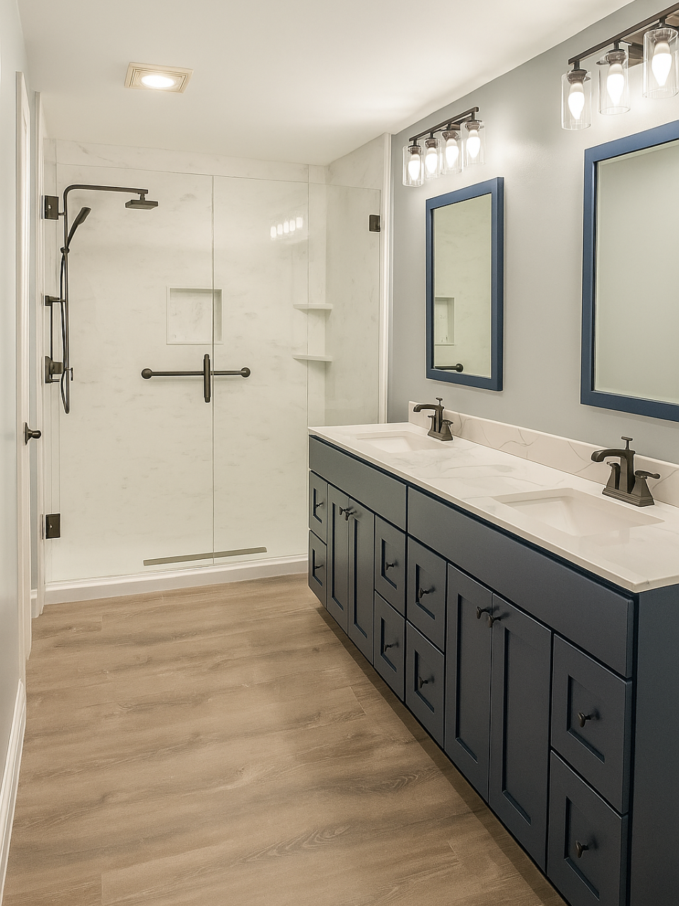 Premier Home Pros’ showers are built for lasting durability, crafted from compressed solid surfaces engineered to withstand daily wear. These bases resist cracks, chips, and fading, ensuring a like-new appearance for decades. Paired with our engineered wall surrounds, made from high-quality materials and stamped under extreme pressure, your shower will remain mold, mildew, and stain free.